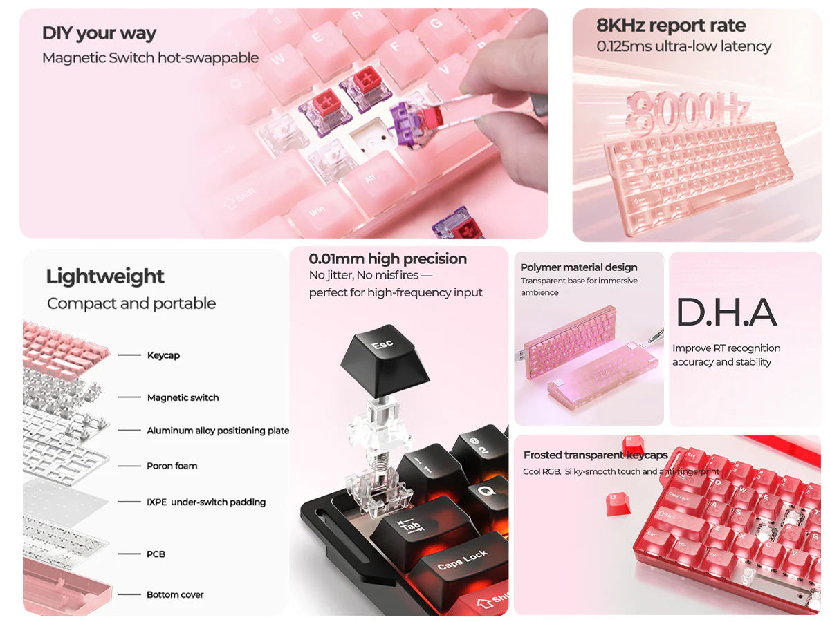 DAREU COOL60 | Magnetische Gaming-Tastatur, Hot-Swap-fähig, 0,01 mmRT-Genauigkeit